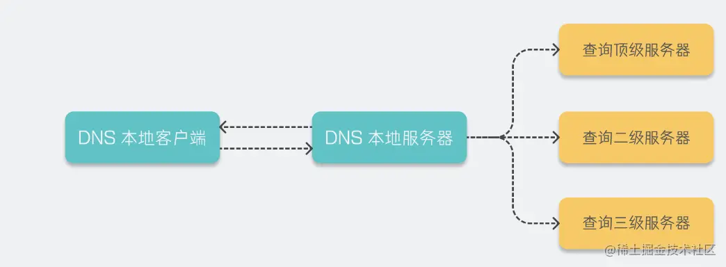 本地 DNS 服务器向其他域名服务器请求的过程是迭代查询的过程👇