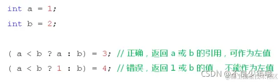 注意: 三目运算符可能返回的值中如果有一个是常量值,则不能作为左值使用。