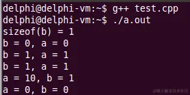 下面为输出结果,可以看到bool类型只占用一个字节,且输出符合上面讲的理论。