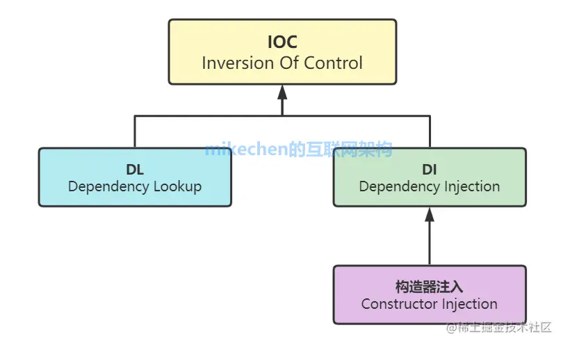 其实IOC包括依赖查找(DL)和依赖注入(DI),只不过DL因为有侵入性 (它需要用户自己去是使用 API 进行查找资源和组装对象),已经被抛弃。