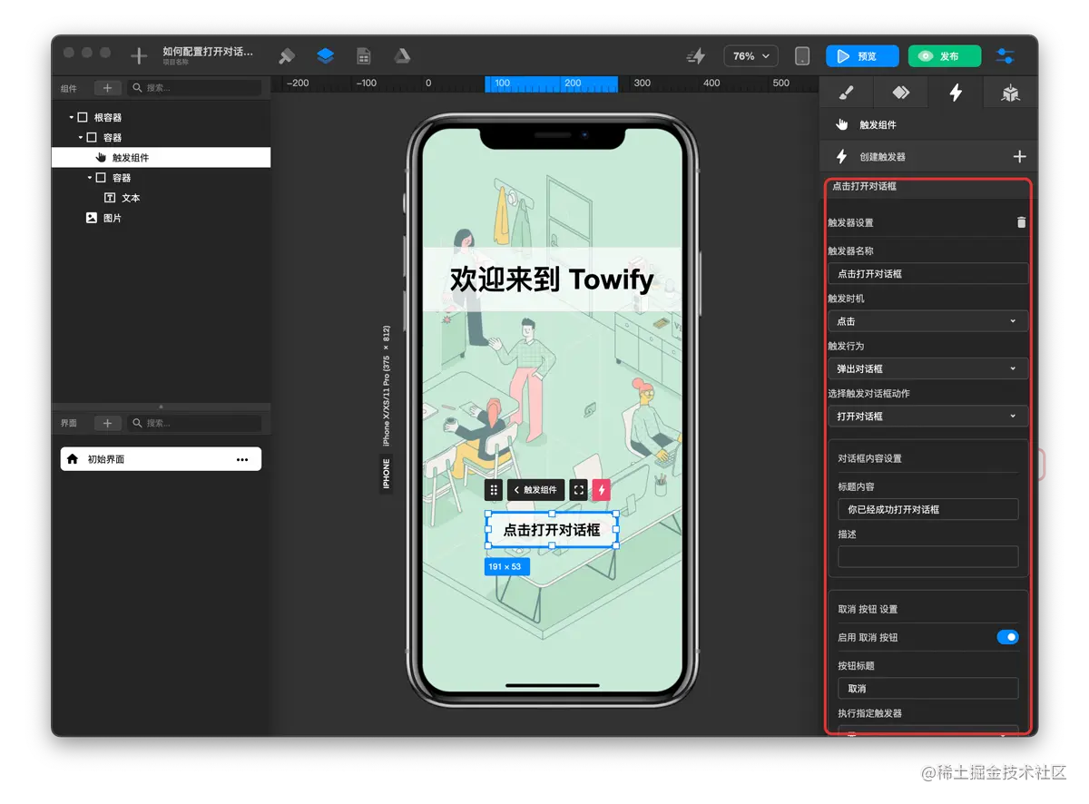 - 触发对话框动作-打开 对话框