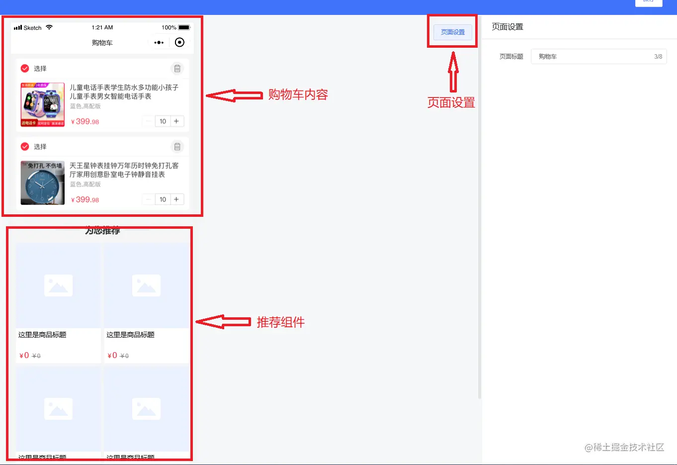 选择商品:根据系统算法,推荐购物车同分类的10款商品,优先推荐高销量且排序在前面的商品。