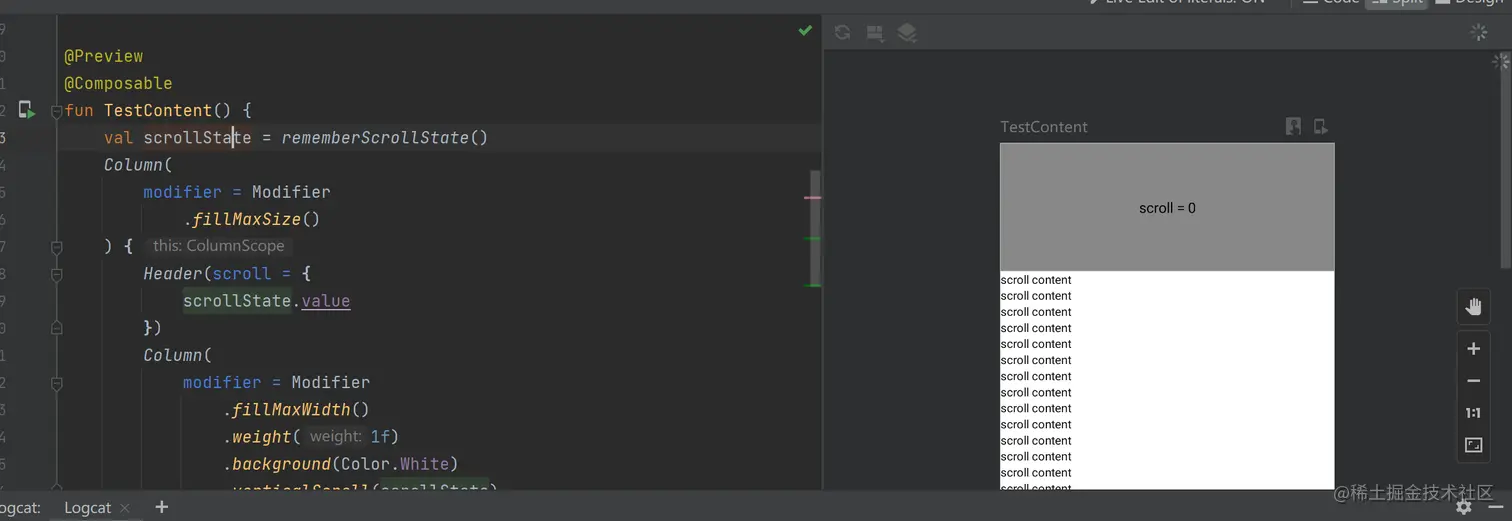 在例子中的情况,我们可以把 scrollState 整个传递进去,但更好的做法是官方推荐的 lambda 表达式参数传递。