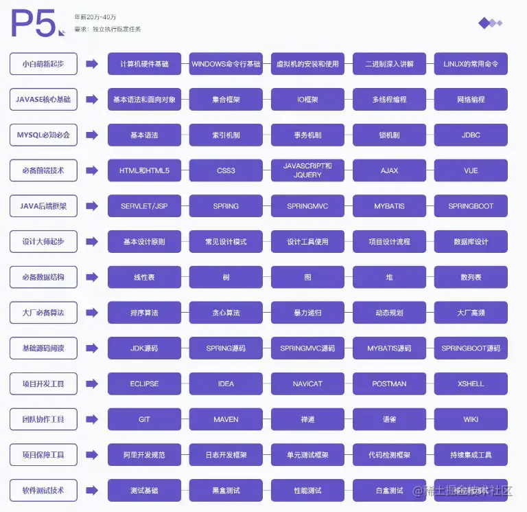 据我朋友分享说:阿里为了让员工更有干劲,所以每个新员工入职有会用内网收到一份阿里的P5-P9学习进阶路线图,来激励大家努力学习努力上进!