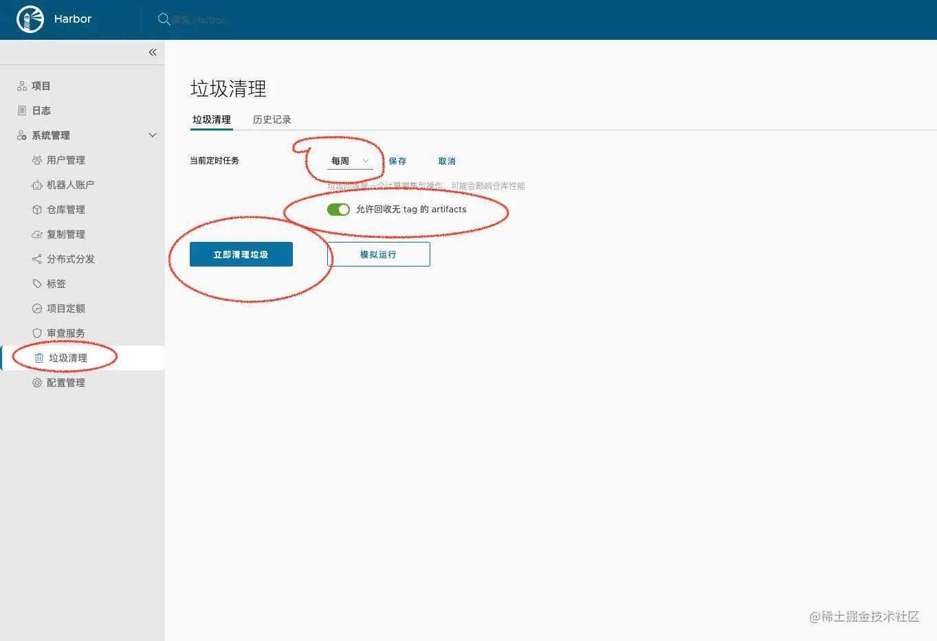 准备一个 docker镜像仓库 使用HarBor2.5.3注意这里来个友情提示 如果跟我一样使用的是HarBor 我建议你们要把 HarBor 定时清理打开每一个服务的镜像都在 400MB左右 更新几次就容易把物理机磁盘占满