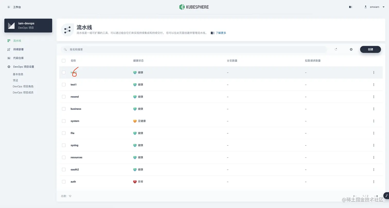 - 选择 左侧菜单的 devops -> 然后选择刚刚创建的 devops 项目