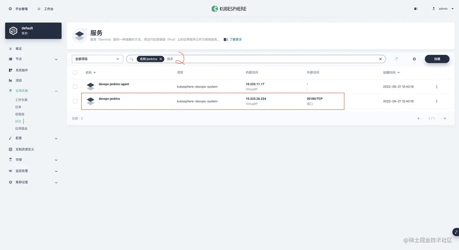 主节点IP:服务端口访问 - jenkins 的登录名 和密码就是 kubesphere admin 的登录名和密码