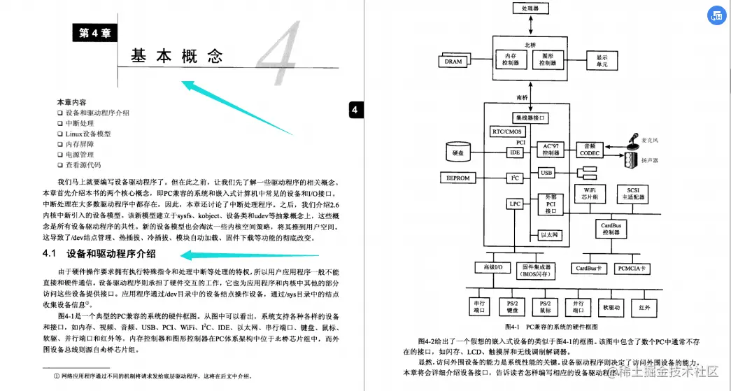 我们马上就要编写设备驱动程序了。但在此之前,让我们先了解一些驱动程序的相关概念。本章首先介绍本书的两个核心概念,即PC兼容的系统和嵌入式计算机中常见的设备和IO接口。中断处理在大多数驱动程序中都存在,因此,本章还讨论了中断处理程序。之后,我们介绍2.6内核中新引入的设备模型。该新模型建立于sysfs.kobject、设备类和udev等抽象概念上,这些概念是所有设备驱动程序的共性。新的设备模型也会淘汰一些内核空间策略,将其推到用户空间。这导致了dev节点管理、热插拔、冷插拔、模块自动加载、固件下载等功能的彻底改变。