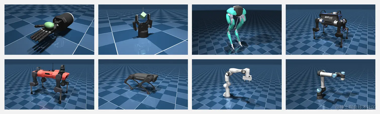 这个集合的目的是为社区提供一个精心设计的模型库,这些模型一开始就能很好地工作:Shadow E3M5、Robotiq 2F-85、Cassie、ANYmal B、ANYmal C、Unitree A1、Panda、UR5e