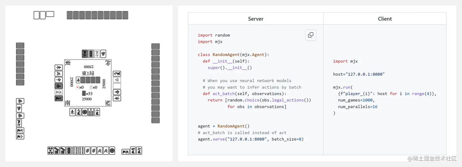 Mjx 是一个日本麻将(riichi Mahjong)模拟器。作为一个游戏服务器,Mjx 与流行的麻将模拟器 Mjai 一样,用于评估麻将 AI,但有额外的功能。它具备以下特性:
