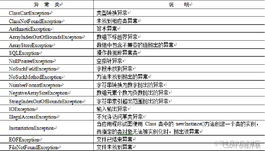 在程序中,错误可能产生于程序员没有预料到的各种情况,或者是因为超出了程序员控制之外的环境因素,如用户的坏数据、试图打开一个根本不存在的文件等。在Java中这种在程序运行时可能出现的一些错误称为异常。