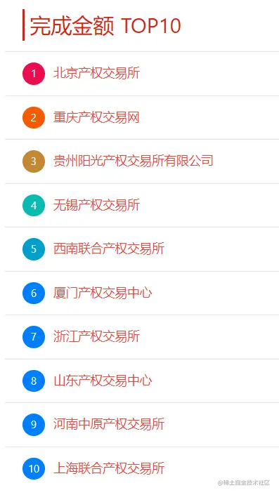 本周交易机构项目完成金额TOP10有:北京产权交易所、重庆产权交易网、贵州阳光产权交易所有限公司、无锡产权交易所、西南联合产权交易所、厦门产权交易中心、浙江产权交易所、山东产权交易中心、河南中原产权交易所、上海联合产权交易所