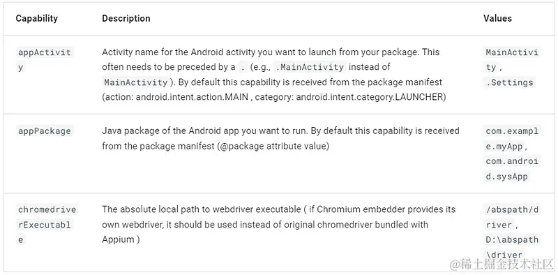 下面这些 Capabilities 仅支持 Android 驱动,比如 UiAutomator2。