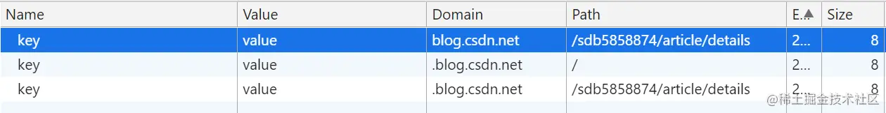 - domain、path、name 都相同时,代表的是同一个Cookie, 重复设置将被覆盖