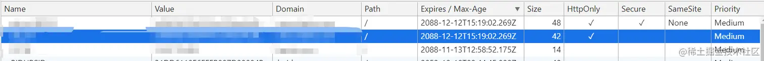 Chrome浏览器界面F12打开控制台,打开Cookies查看页,可以看到Cookie的属性非常之多。