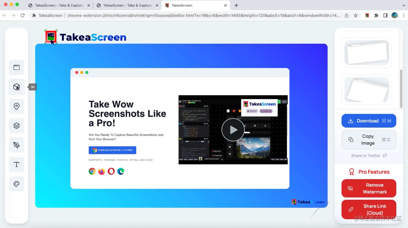 - TakeAscreen - 这是一个截图优化编辑的工具,浏览器插件,可以快速使用标注,选择样式等操作,还是很方便的。付费产品,价格不高。