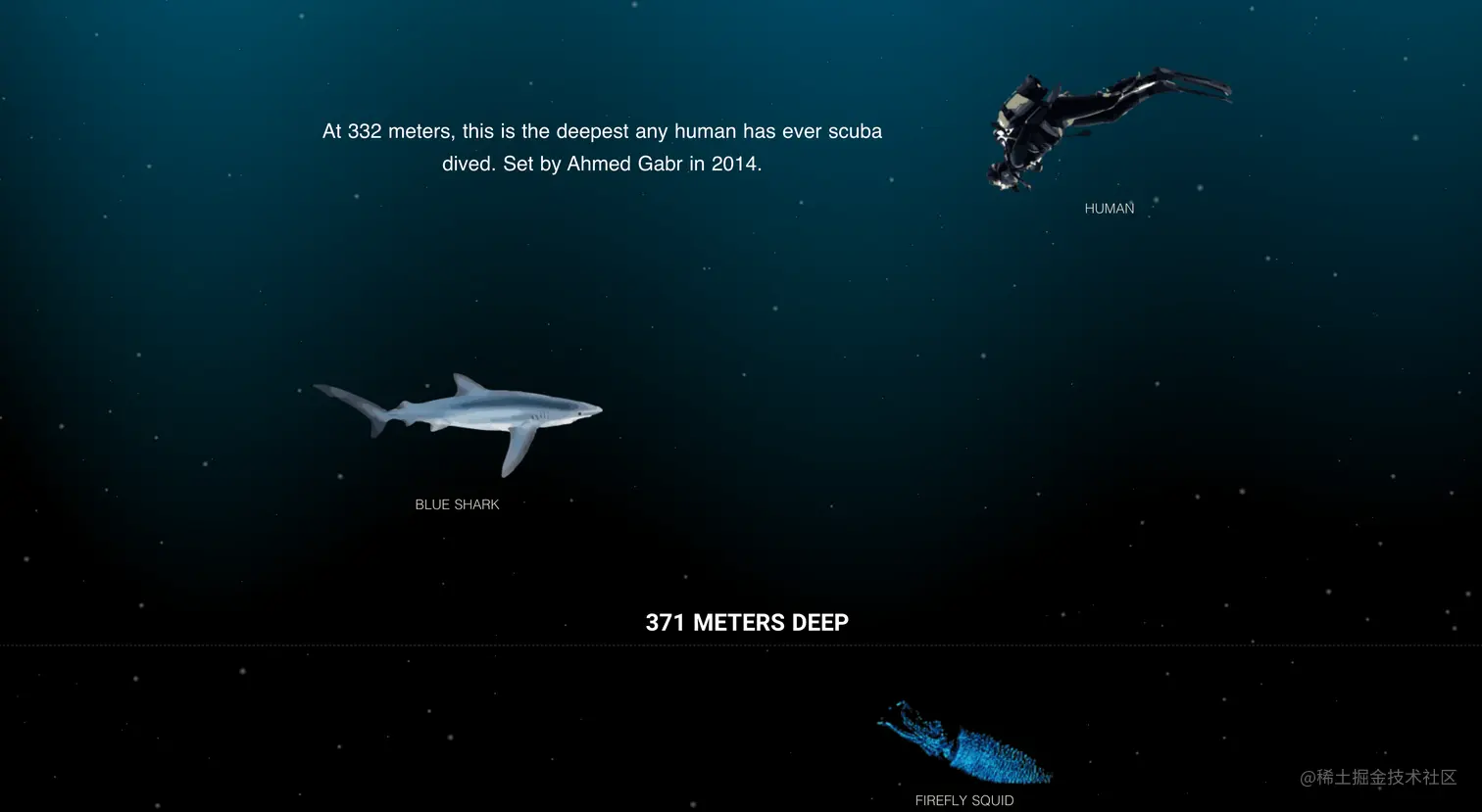 - The Deep Sea - 这个网站也很有意思,可以很直观地看海底多深的地方有什么用的生物。