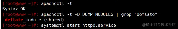 apachectl -t -D DUMP_MODULES | grep "deflate" #检查 mod_deflate 模块是否已安装