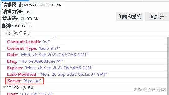 浏览器访问http://192.168.136.20,双击200消息查看Server项