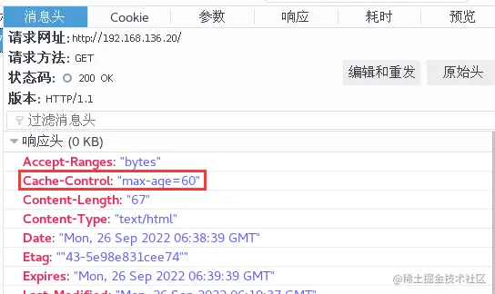 浏览器访问 http://192.168.136.20 ,双击200消息查看 Expires 项