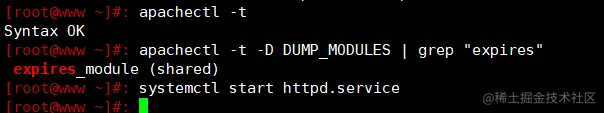 apachectl -t -D DUMP_MODULES | grep "expires"————————检查mod_expires模块是否已安装