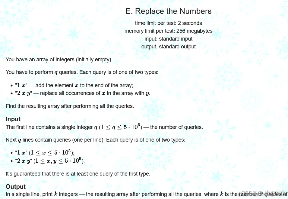 执行q次操作,有两个选项:添加一个数或者将当前所有指定的数变为另一个数。