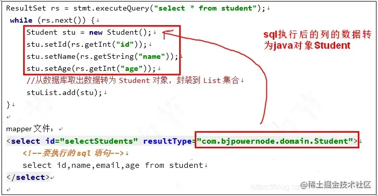 <resultMap id="studentMap" type="com.bjpowernode.domain.Student">