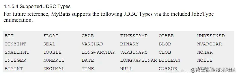 语法格式: #{ property,javaType=java 中数据类型名,jdbcType=数据类型名称 }