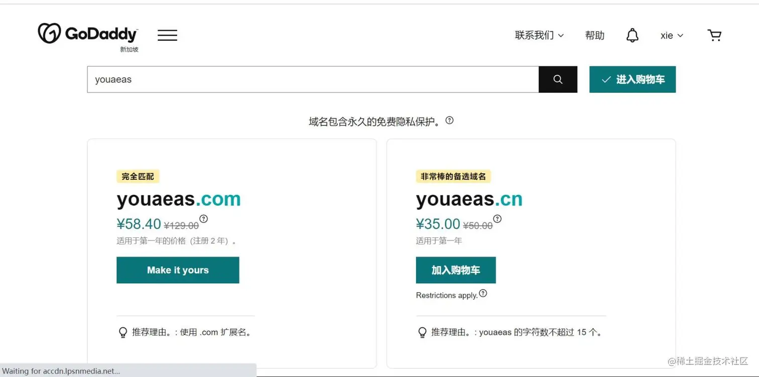 这里推荐去国外的Godaddy平台注册一个域名