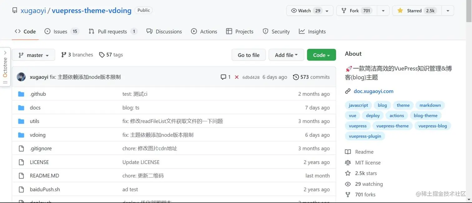 Vdoing主题项目地址,这里建议fork整个仓库,然后自己做一些修改即可,作者大大真的太强了。