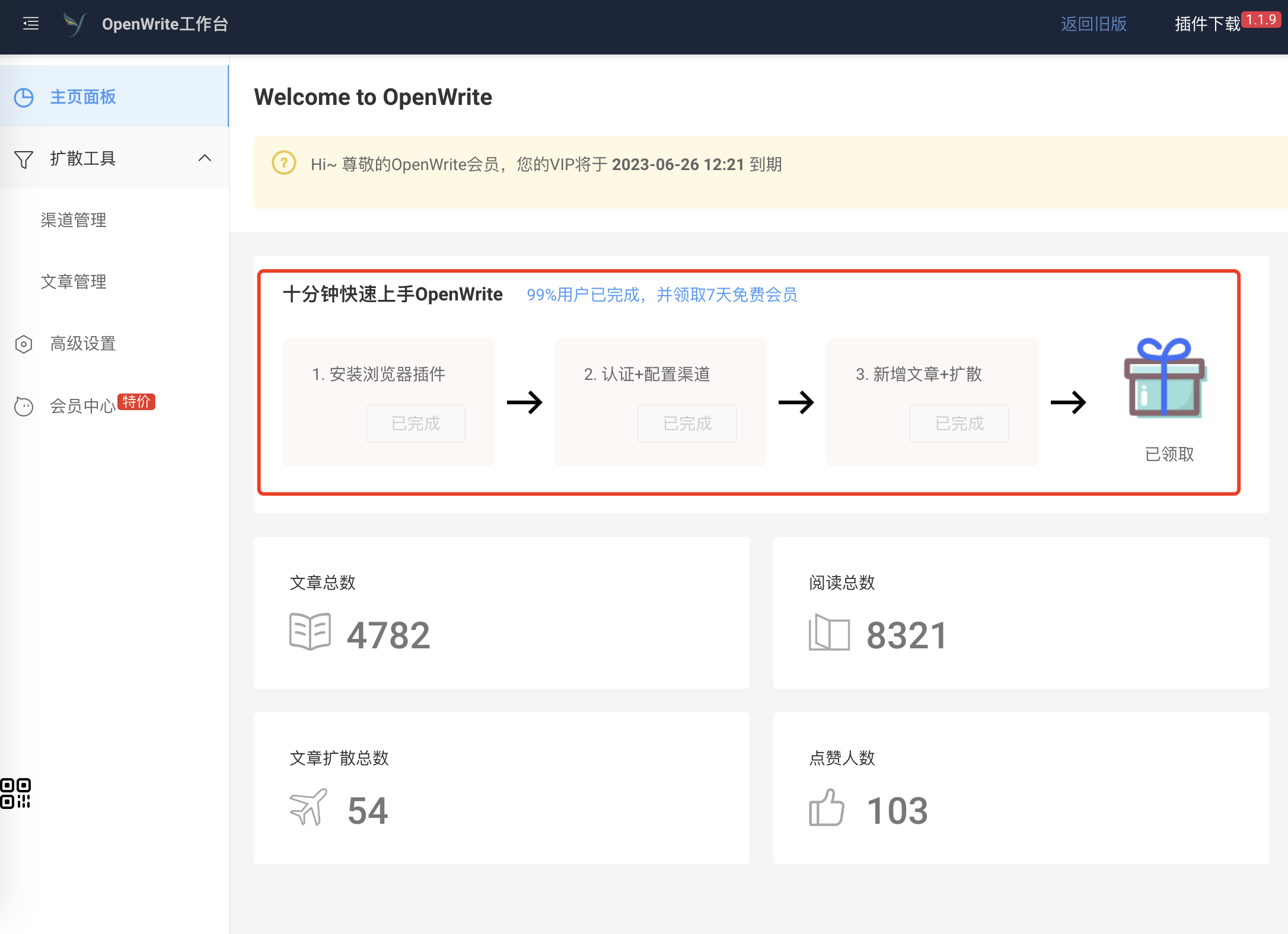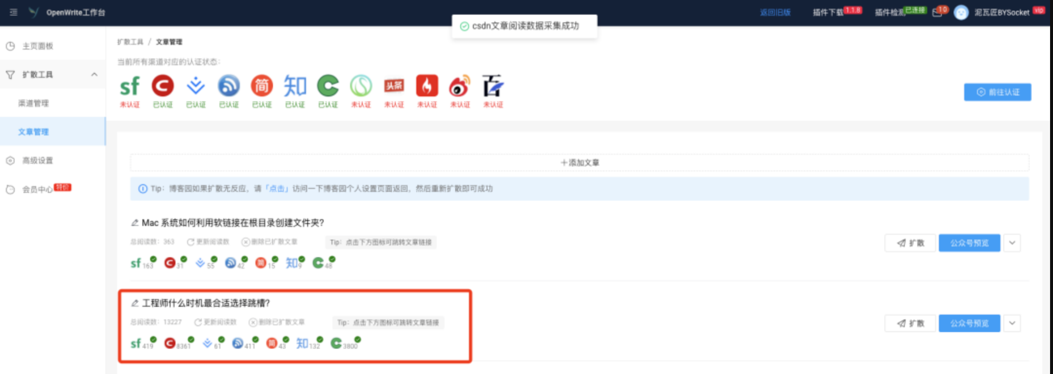 免费的用户在群发文章的时候,默认文章底部会挂 slogan 和链接:"本文由博客群发一文多发等运营工具平台 OpenWrite 发布!"