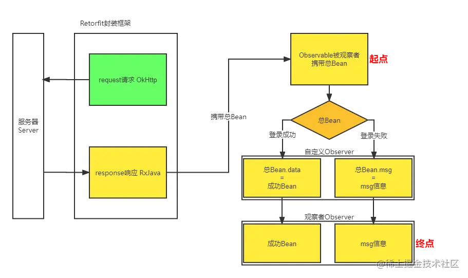 问题描述:服务器成功返回给客服端的data数据一般是JavaBean数据。当服务器返回数据失败时,data数据就不一定是再是JavaBean,而是可能是null、0等不同的数据,故解析时就会出现异常,下面就使用Rx来解决此问题