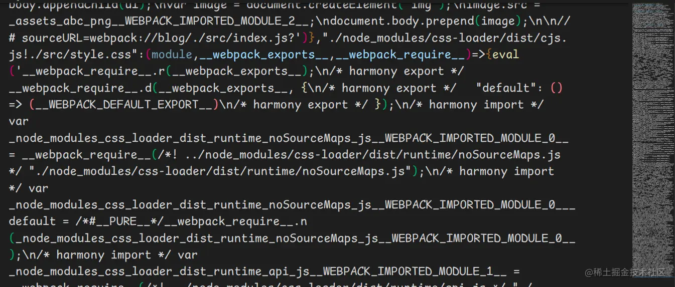 /dist/main.js中看一下,代码被简化成了直接输出刚才我们所编写的数组的语句,说明webpack自动判断了我们所编写代码的逻辑,并通过import语句得到了我们所引入的代码,分析后生成新的js文件. -