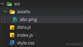 index.js中引入图片:import AbcImage from "./assets/abc.png" ... const image = document.createElement("img"); image.src = AbcImage; document.body.prepend(image); -