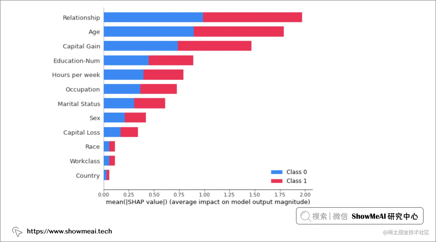 我们来拿一个场景案例讲解一下SHAP如何进行模型可解释分析,用到的数据是人口普查数据,我们会调用 Python 的工具库库 SHAP 直接分析模型。