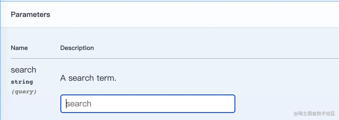 重启项目,打开swagger界面可以看到列表接口多了一个search字段,使用这个search字段就可以在配置的search_fields中的字段进行搜索了。