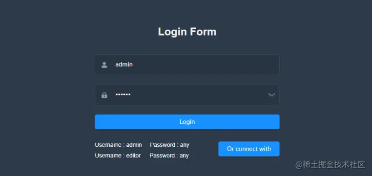 所以它默认的就是根据登入的用户roles字段,返回这几个内容(我们自己的后端服务接口直接return这些内容就可以了),修改后点击登入成功进入了主页