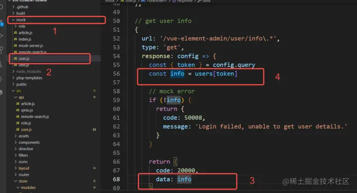 发现返回的info内容,继续往上找users[token]是在哪里定义的 ( ctrl+鼠标左键 跳转)