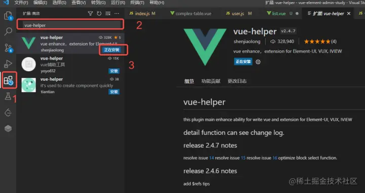 在vscode模块里面搜索" vue-helper ",进行安装