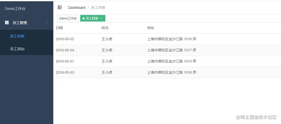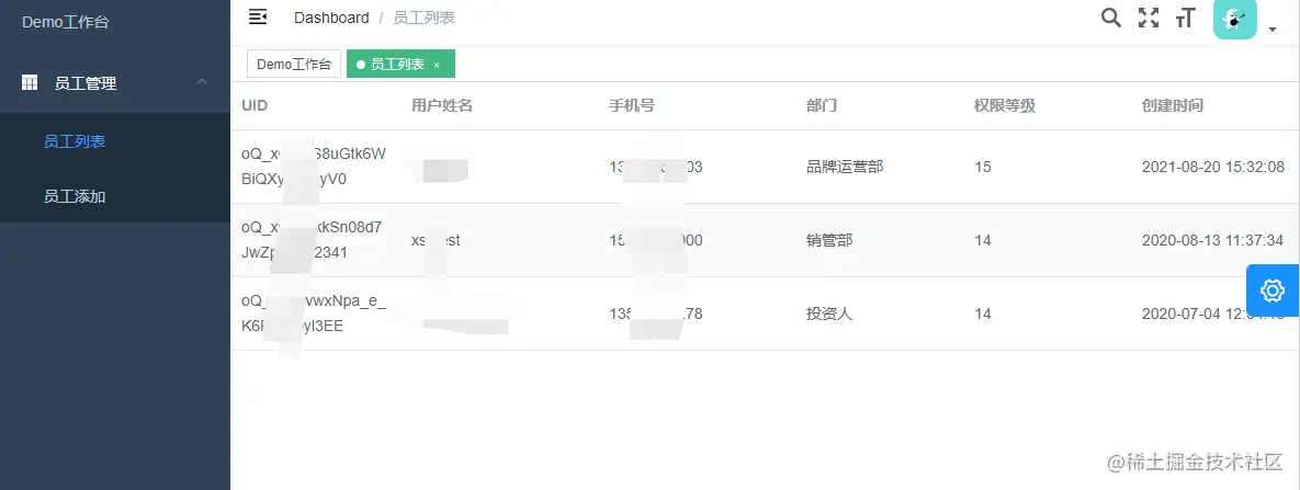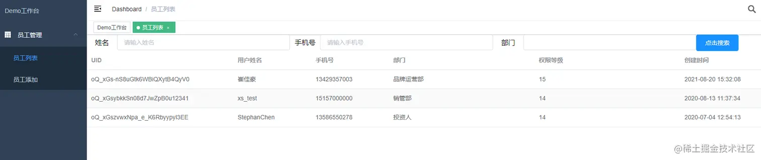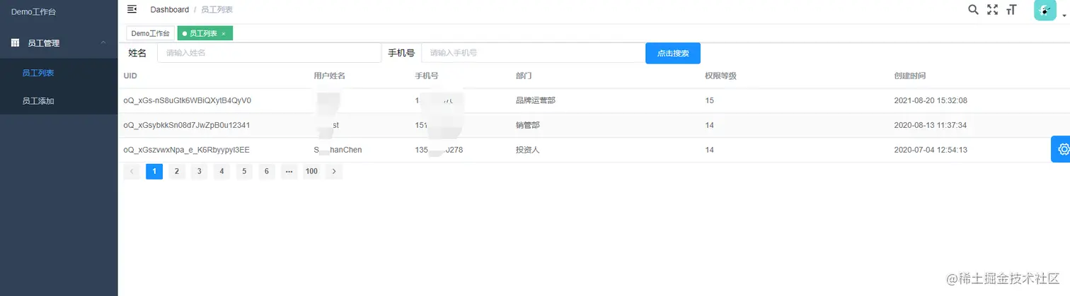 员工列表页面