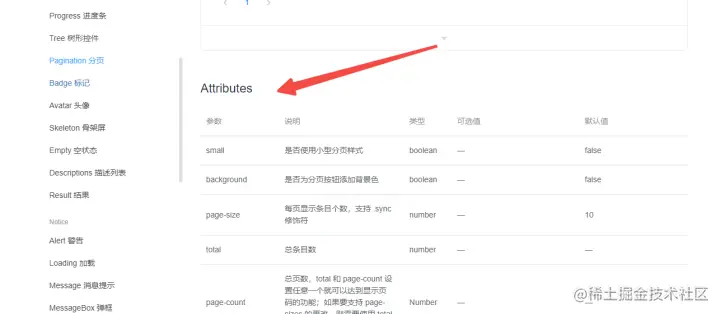 element-ui文档页面往下拉有参数使用方法,