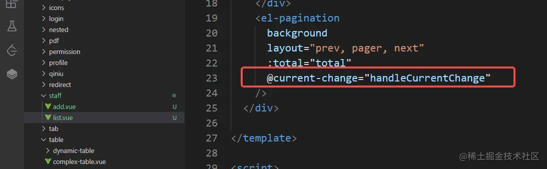 再写上触发事件的方法,因为我后端接口默认page是从0开始的,所以减去1