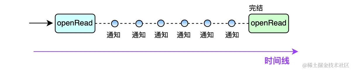 另外,事件通知的时间不确定的,作者创作的过程也是非常耗时的,所以机体没有必要处于同步等待 的阻塞状态。像这种 异步事件序列 被形象的称之为 Stream 流 。