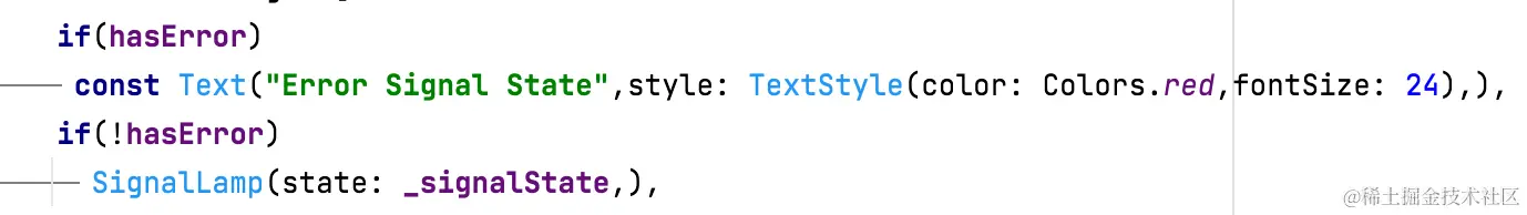 在使用 Stream 触发更新之前,先说一下思路。Stream 可以监听一系列事件的触发,每次监听会获取新的信号状态,根据新状态渲染界面即可。如下在 SignalState 中定义 next 方法,便于产出下一状态。逻辑很简单,如果数值大于一,类型不变,数值减一,比如 红灯 6 的下一状态是 红灯 5 ; 如果数值等于一,会进入下一类型的最大数值,比如 红灯 1 的下一状态是 黄灯 3 。