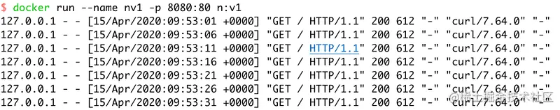 \ 2.新建 Dockerfile 文件\ # 基于 nginx:1.17.9 镜像构建 FROM nginx:1.17.9 # 指定信息 LABEL maintainer="hogwarts@testing-studio.com>" # 设置环境变量 ENV NGINX_VERSION 1.17.9 # 切换 root 用户 USER root # 执行命令,安装 curl 软件,设置软链接把 nginx 服务的日志显示到终端输出上。 RUN apt-get -yq update && apt-get install -y curl && \ ln -sf /dev/stdout /var/log/nginx/access.log && \ ln -sf /dev/stderr /var/log/nginx/error.log # 设置容器内 /data 目录为匿名卷 VOLUME ["/data"] # 设置工作目录 WORKDIR /data/html/ # 复制 index.html 文件到 WORKDIR 目录下。 COPY index.html . # 映射 80 端口 EXPOSE 80 # 此处 CMD 作为 ENTRYPOINT 的参数。 # CMD ["nginx", "-g", "daemon off;"] CMD ["-g", "daemon off;"] # 设置容器启动的命令 ENTRYPOINT ["nginx"] # 检查容器健康,通过访问 Nginx 服务 80 端口,来判断容器服务是否运行正常。 HEALTHCHECK --interval=5s --timeout=3s \ CMD curl -fs http://localhost/ || exit 1\ 3.构建镜像\ docker build -t n:v1 .\ 4.运行容器\ docker run --name nv1 -p 8080:80 n:v1\ 启动后,HEALTHCHECK 就会5秒钟访问一次 Nginx 服务,来确保容器运行的状态。\服务正常的状态。COMMAND 栏显示的命令,为 ENTRYPOINT 指令和 CMD 指令合并后的命令。\