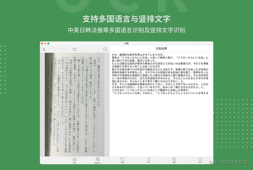 上课拍老师的 PPT 识别文字存笔记、拍照翻译文字、图片文字提取、公司文件转录、纸质书阅读笔记摘录、截图文字内容提取、身份证识别、购物小票识别,纸质文件电子化合成 PDF 存档等等多种场景适用。