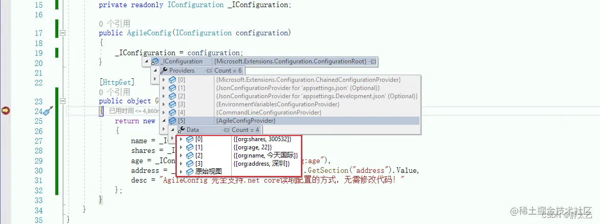 1、需要再项目用引用 nuget包,AgileConfig.Client