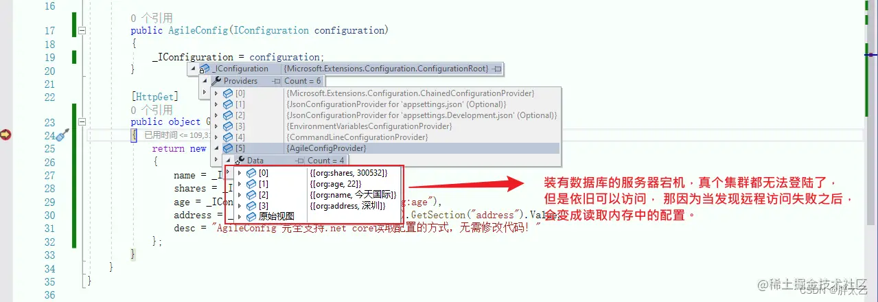 AgileConfig是一个基于 .net core开发的轻量级配置中心。AgileConfig秉承轻量化的特点,部署简单、配置简单、使用简单、学习简单,它只提取了必要的一些功能,并没有像Apollo那样复杂且庞大。但是它的功能也已经足够替换webconfig,appsettings.json这些文件了。有关配置中心的基础概念可以看【微服务配置中心的基本概念_胖太乙的博客-CSDN博客】