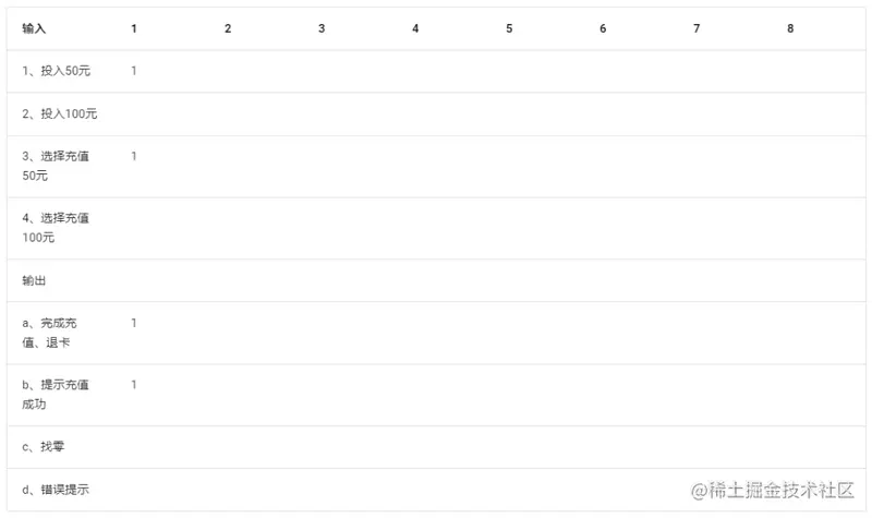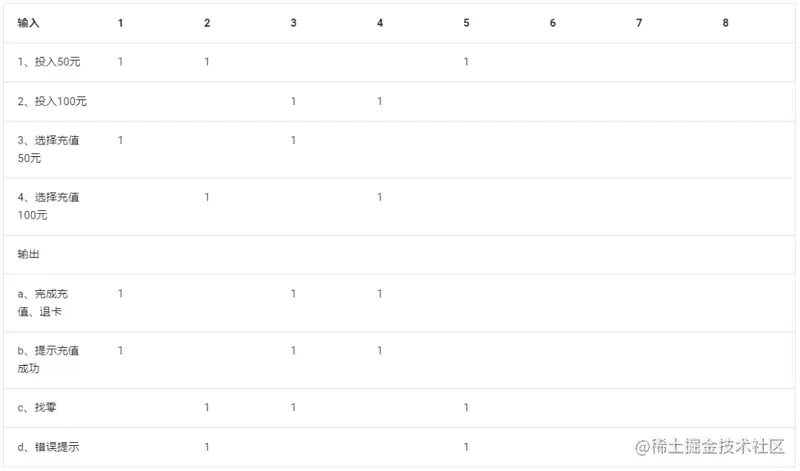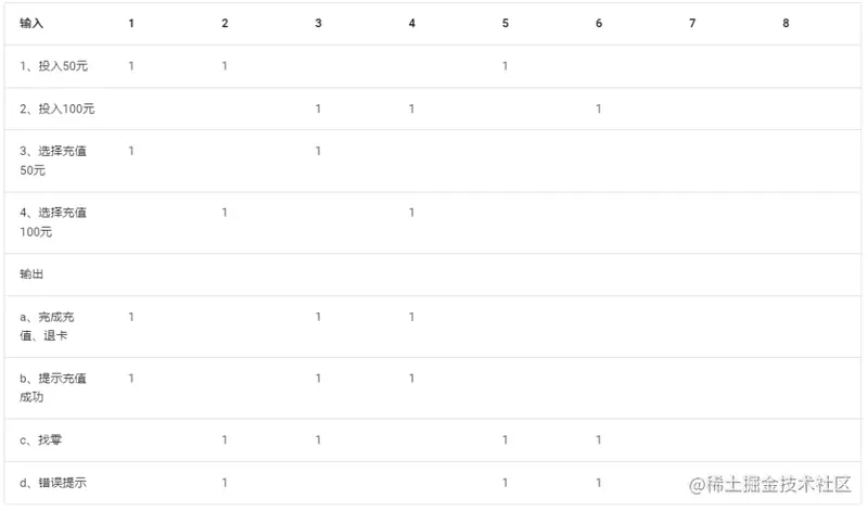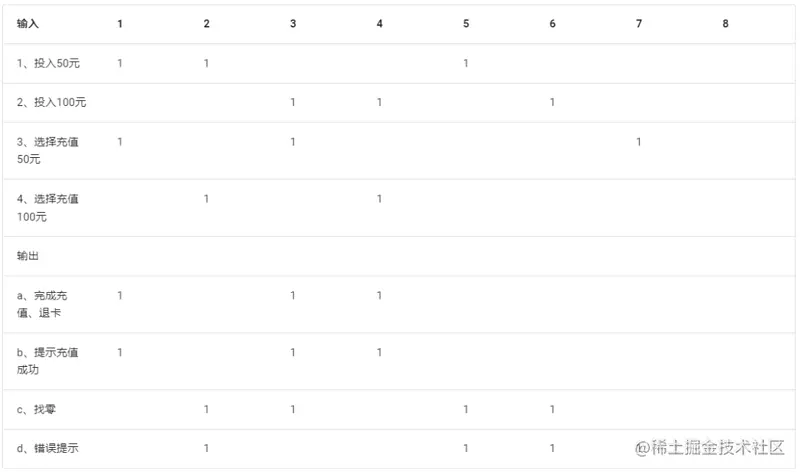 最后的表格就是一个判定表,再把判定表转化为测试用例。