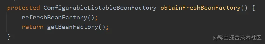 obtainFreshBeanFactory() 方法最终返回的 beanFactory 为org.springframework.beans.factory.support.DefaultListableBeanFactory.